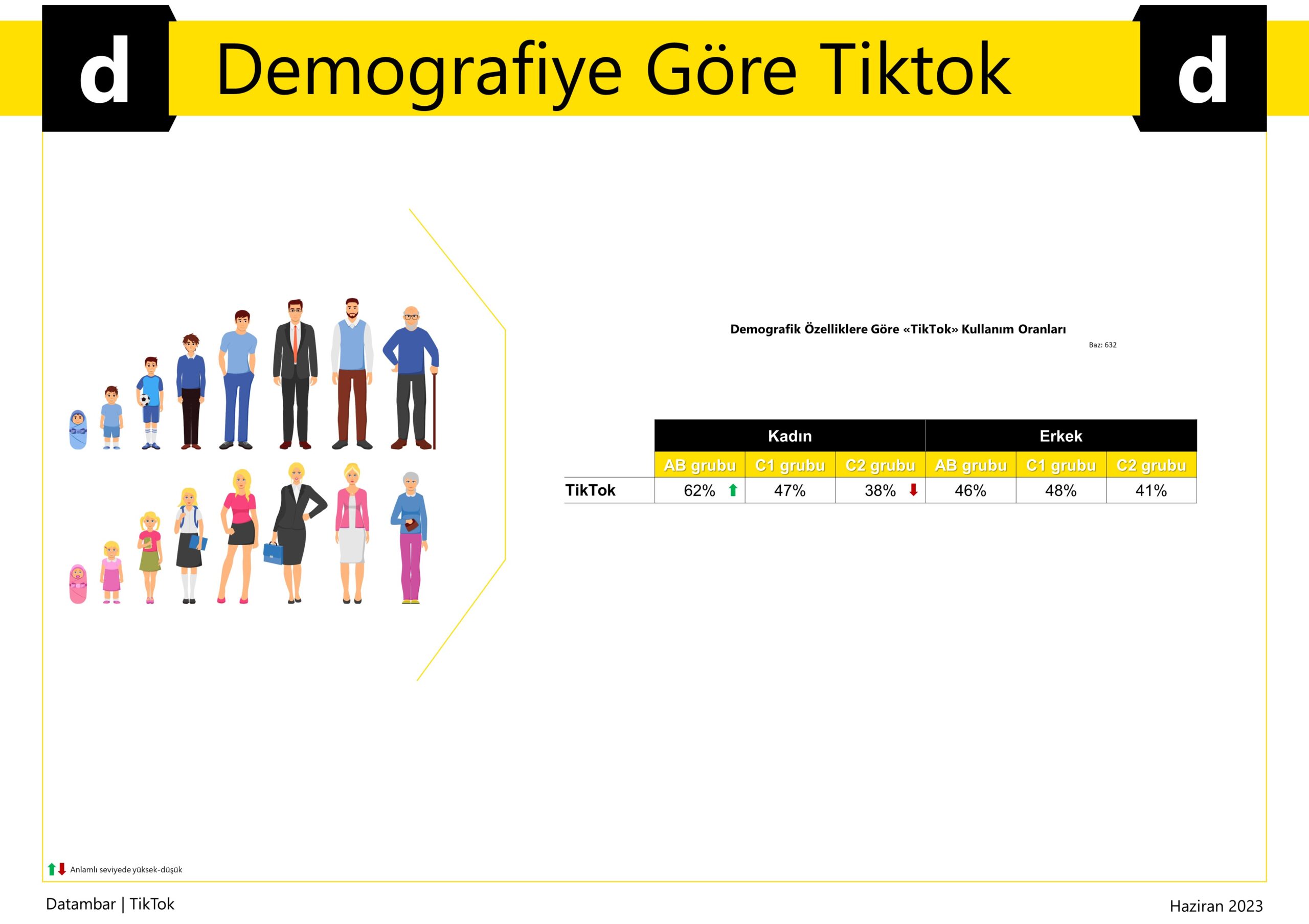 - TikTok kullanım oranı kadınlarda %46, erkeklerde %44.